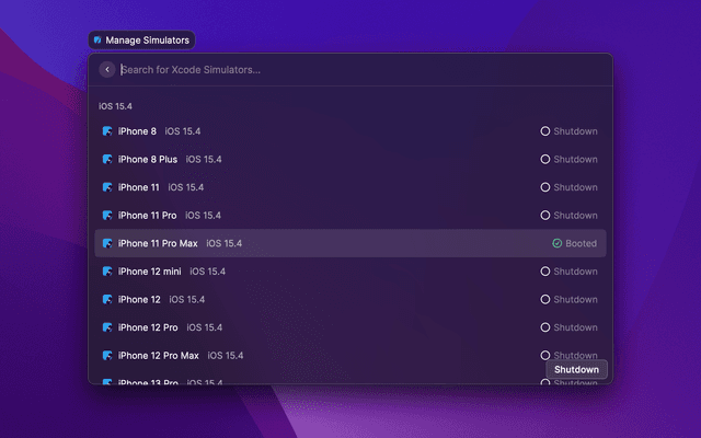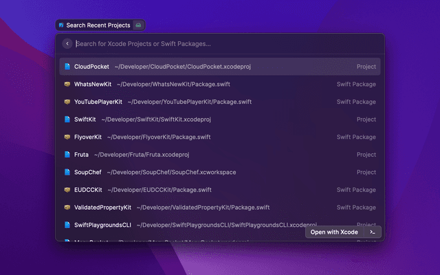 Search and open your recent Xcode Projects, manage your Simulators & Apps,