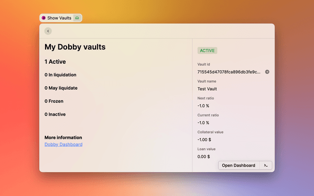 Show your current Defichain vaults, setup in https://defichain-dobby.com/