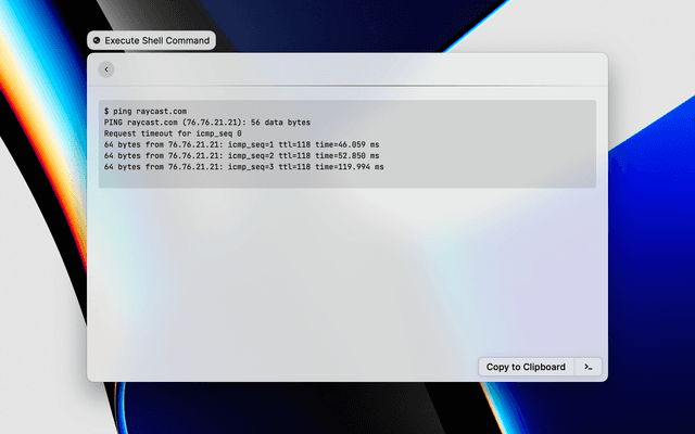 Execute shell commands from Raycast.