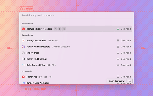 • Capture Raycast Metadata: Capture a screenshot for Raycast Extension's metadata.