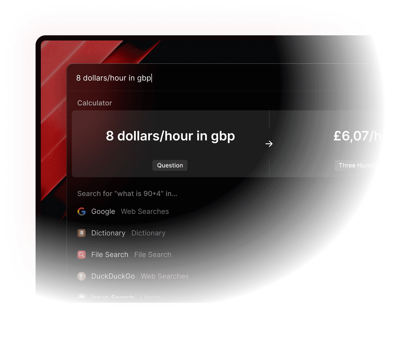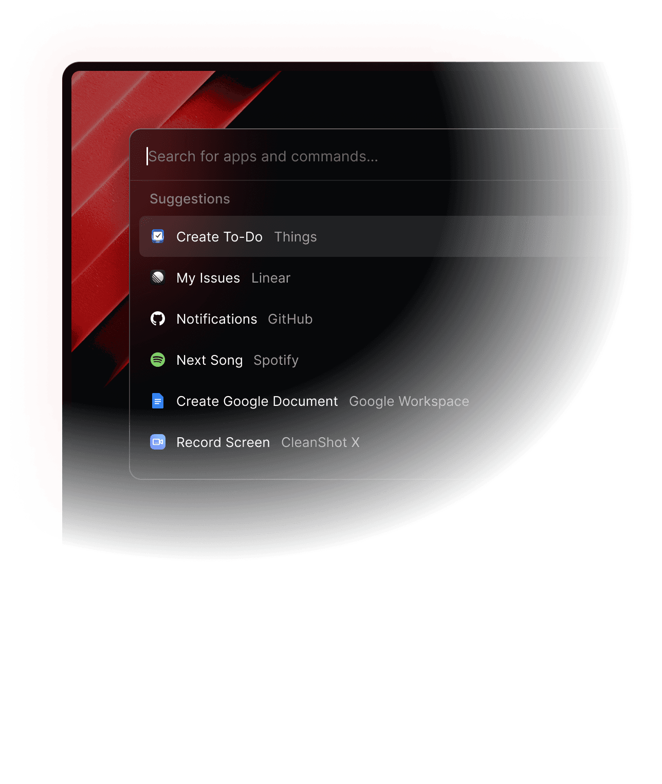 With thousands of extensions in the Raycast Store, you’ll find seamless integrations for your favorite tools, from Apple Notes to Slack, Linear, GitHub, and everything else in between.