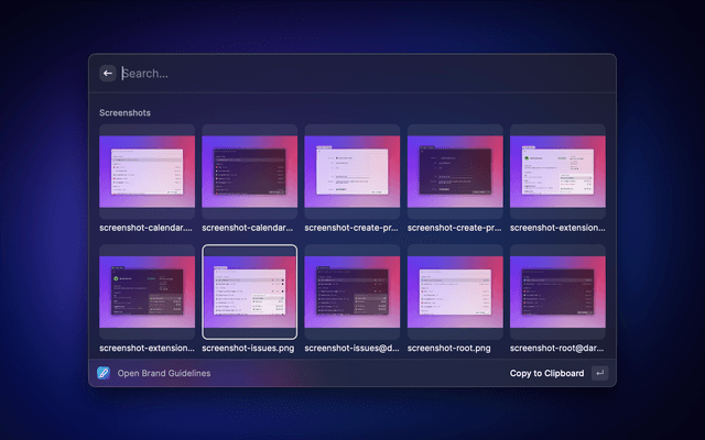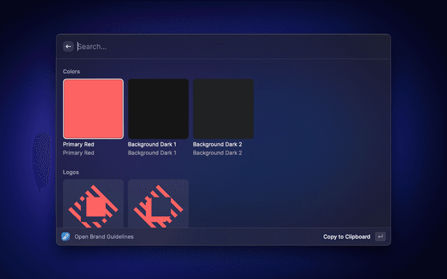 Quickly grab colors, logos, and brand assets from Raycast, without Developers needing to bother Designers.