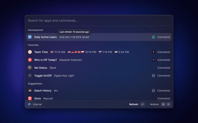 As next steps, you can show additional metrics in Raycast, f.e. last month's cohort retention or the visitor count of your website.