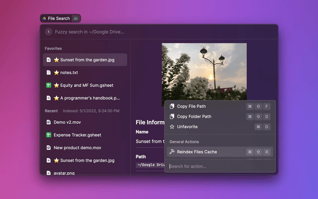 Fuzzy search files in the mounted Google Drive
